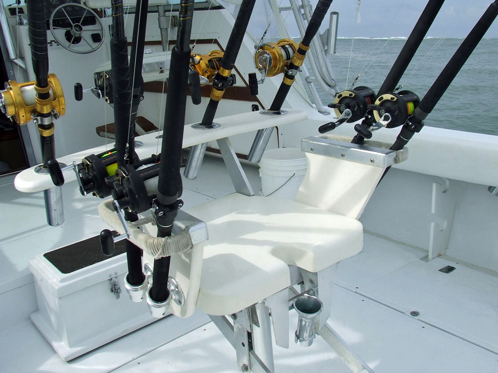 She is outfitted with Penn and Shimano trolling and casting gear,